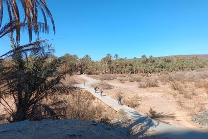 Tego dnia czekać nas będą dość łatwe przejazdy rowerowe w stosunkowo niewymagającym terenie, więc nasze mięśnie będą mogły trochę odpocząć. Po śniadaniu rozpoczniemy naszą pierwszą trasę rowerową wiodącą spokojną ścieżką u podnóża gór w kierunku osady Battou. Następnie przejedziemy samochodami terenowymi za miejscowość Tazzarine, a po lunchu wyruszymy na rowerach przez skraj krainy saharyjskiej. Odkryjemy prehistoryczne ryty naskalne w Ajt Ouazik, a mijając małe wioski, oazy i zapewne także klany nomadów z ich stadami poczujemy się jak w innym świecie. Na koniec dnia dotrzemy samochodami do obozowiska na pustyni, gdzie pod rozstawionymi przez nomadów luksusowymi namiotami spędzimy noc. Jeśli nie przeszkodzi nam w tym wiatr, wieczór po posiłku spędzimy przy obozowym ognisku.