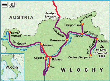 Przełęcz Brennero – Vipiteno (Sterzing) – Fortezza (Franzensfeste) – Aica (Aicha) – Kiens (Chienes) – Raststatte Lanz – ok. 54 km